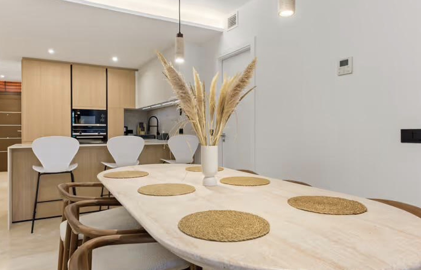 El salón-comedor, de generosas dimensiones, dispone de una Smart TV de 65", ideal para momentos de descanso en un ambiente moderno y acogedor.
