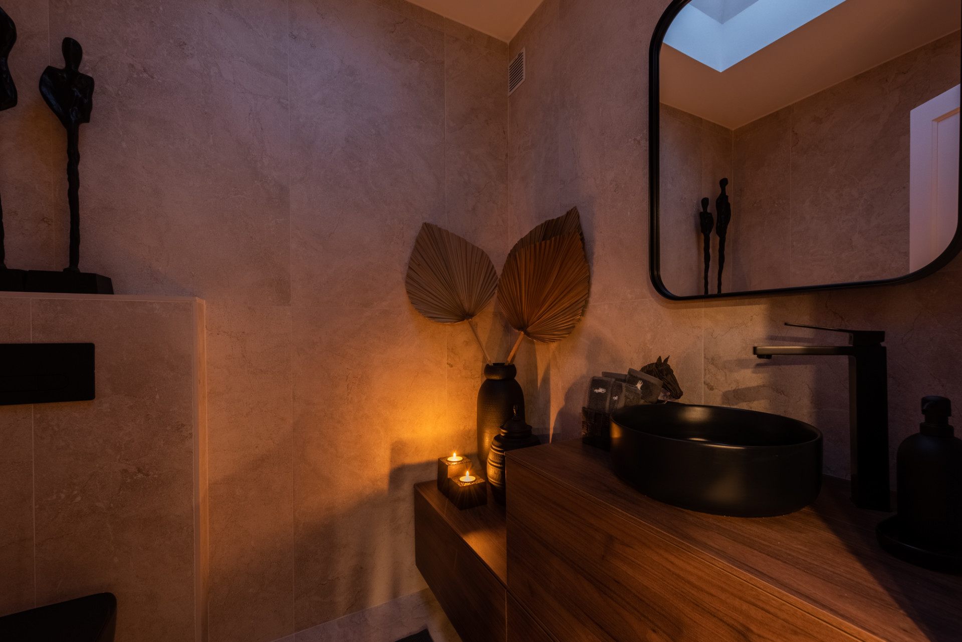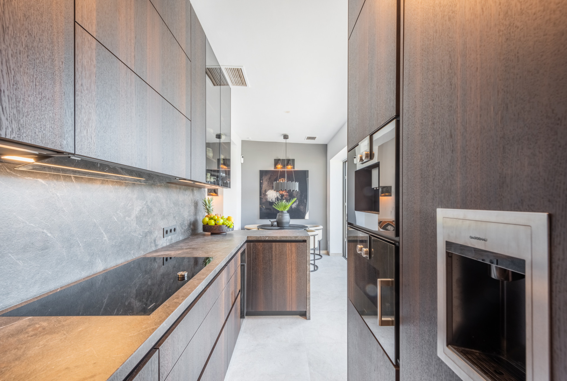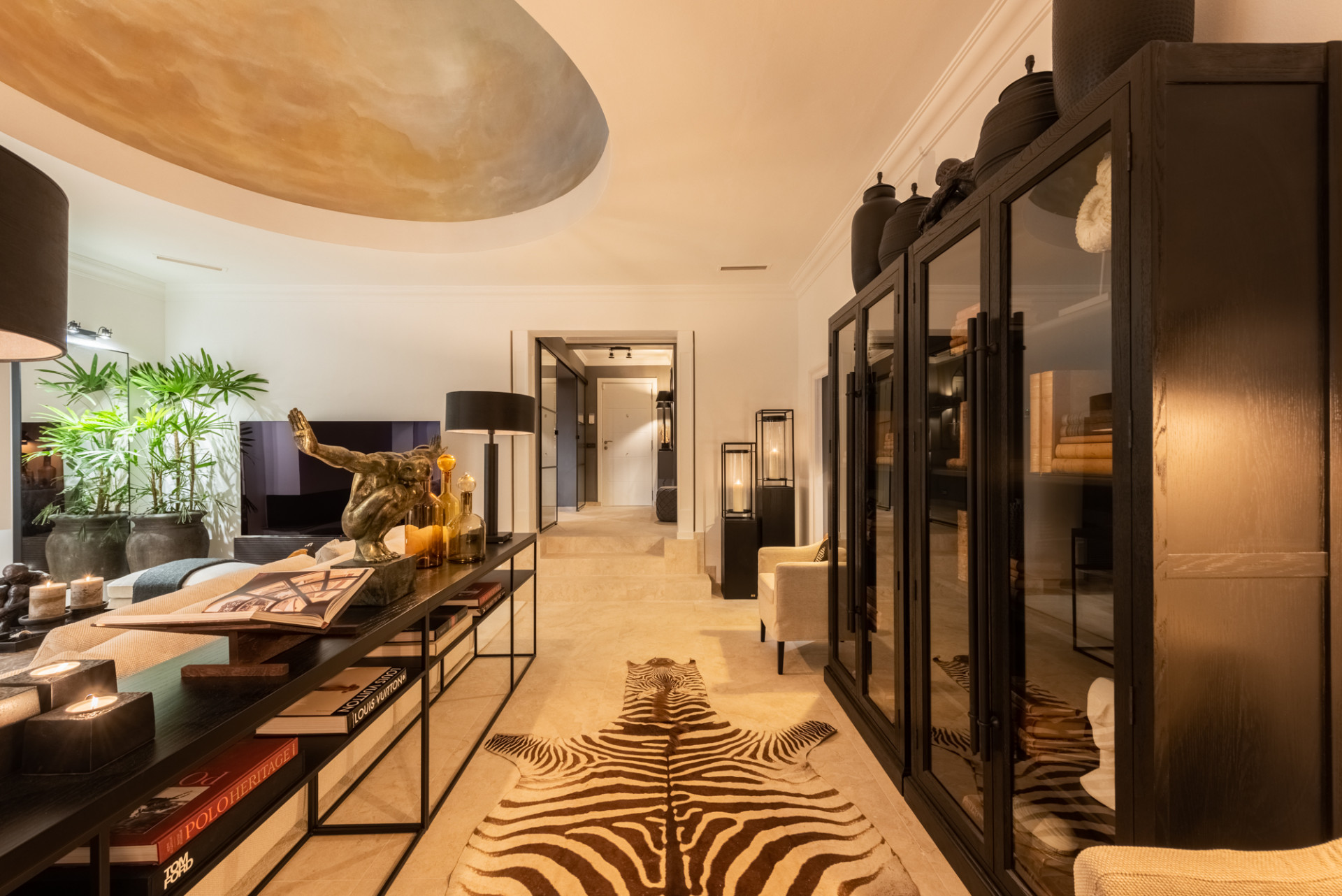Bungalow de diseño de estilo Scandi en la playa Oasis Club en la Milla de Oro de Marbella.
