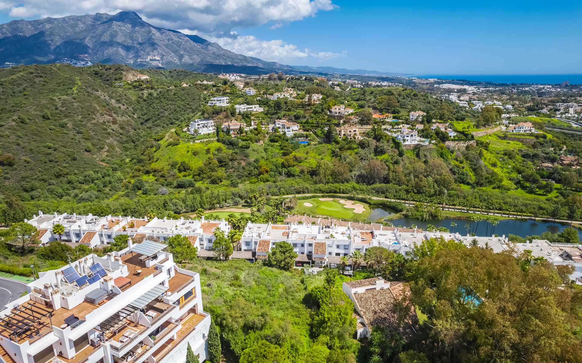 La Quinta está rodeada de increíbles paisajes y cada una de las villas se asienta sobre una parcela elevada y disfruta de impresionantes vistas al mar Mediterráneo, África y Gibraltar. Bien situada, está a poca distancia de algunos de los mejores campos de golf de la costa, del centro comercial de Monte Halcones (bares, restaurantes, farmacia, banco, tienda de conveniencia, tienda de productos orgánicos y oficinas) y de las instalaciones del renombrado hotel Westin La Quinta y de los campos de golf.