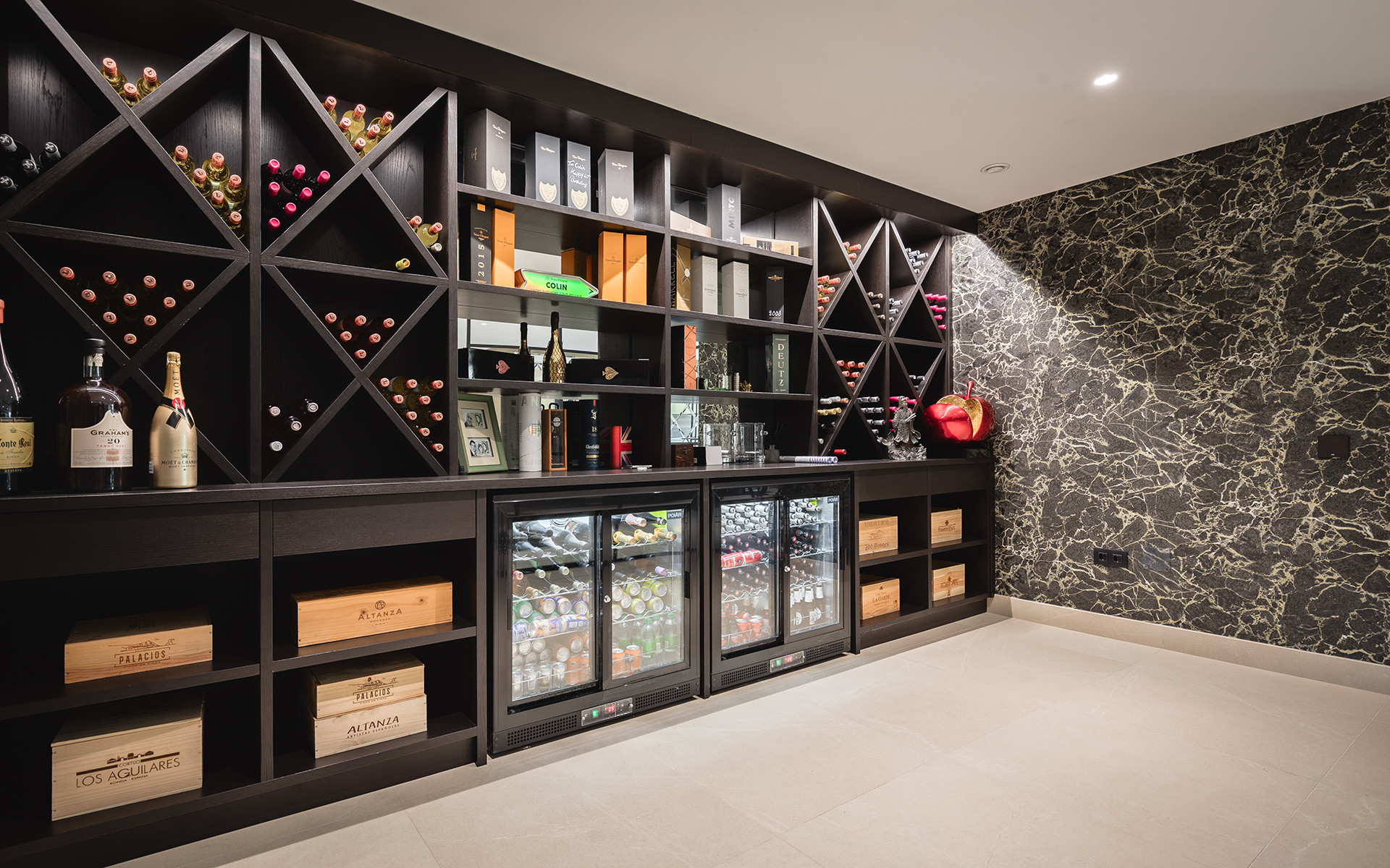 Thoughtfully laid out for both daily comfort and social gatherings, the home features multiple indoor and outdoor living areas. At its heart is a fully equipped Gaggenau kitchen with a central island, complemented by a separate prep kitchen and an adjoining outdoor BBQ space—perfect for entertaining. The seven bedrooms each come with en-suite bathrooms, ensuring both privacy and luxury for residents and guests.