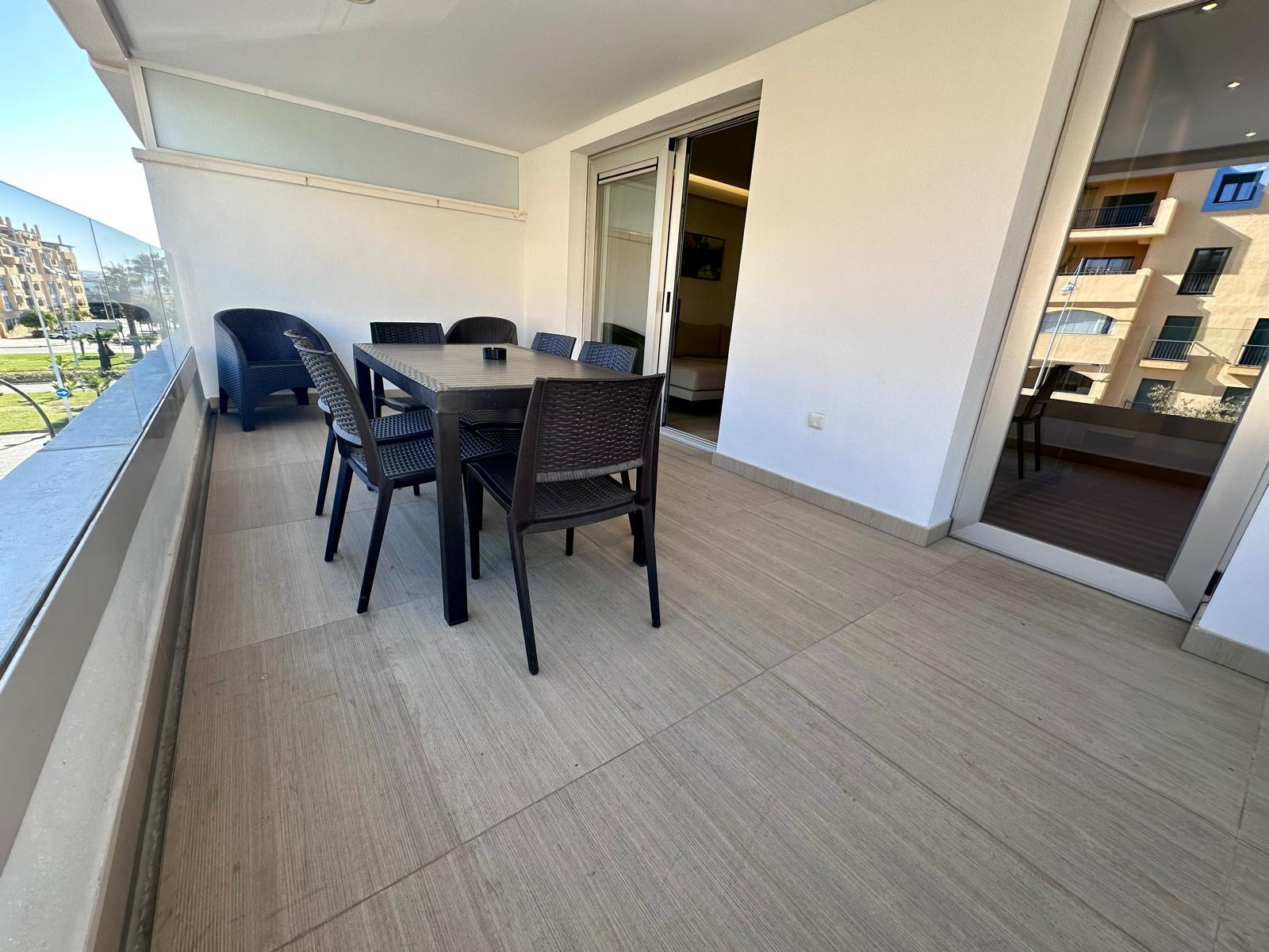 The apartment features 3 bedrooms, 2 bathrooms (one of them en-suite), a fully equipped kitchen, and a spacious living room with direct access to the terrace. It is in excellent condition and comes fully furnished, ready to move in.